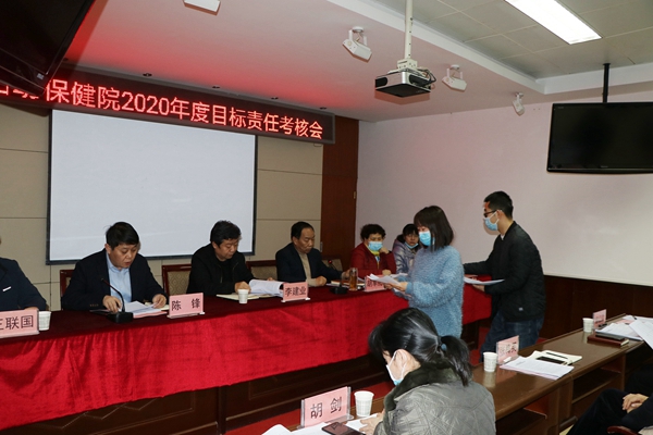 胡軍虎書記代表院領(lǐng)導(dǎo)班子向考核組匯報了我院2020年度各項目標(biāo)任務(wù)完成情況及取得的成績,分析了當(dāng)前存在的問題,并提出了2021年度努力的放向。