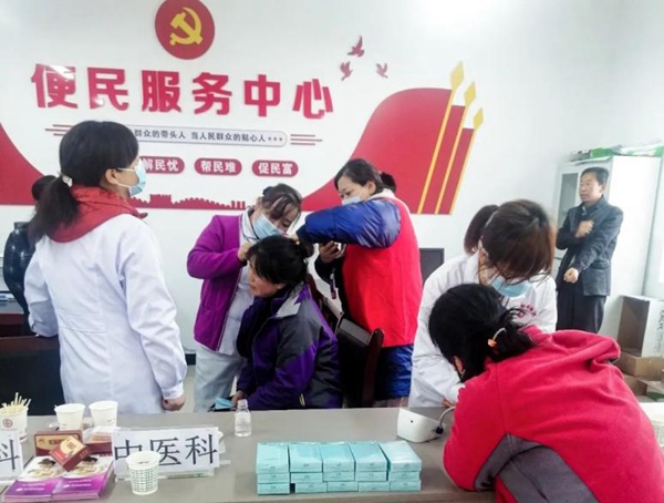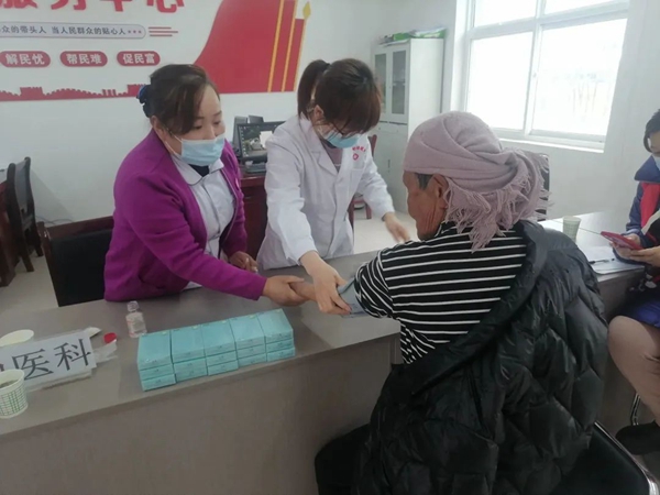 義診現(xiàn)場,前來咨詢、問醫(yī)的多為老年人,醫(yī)務(wù)人員耐心地為大家講解常見病、多發(fā)病的預(yù)防知識和注意事項,詳細地了解他們的飲食、勞作、睡眠等生活習(xí)慣,有針對性地給出預(yù)防和治療方案。同時,為每一位前來就診咨詢的群眾進行血壓、血糖等項目的檢查。