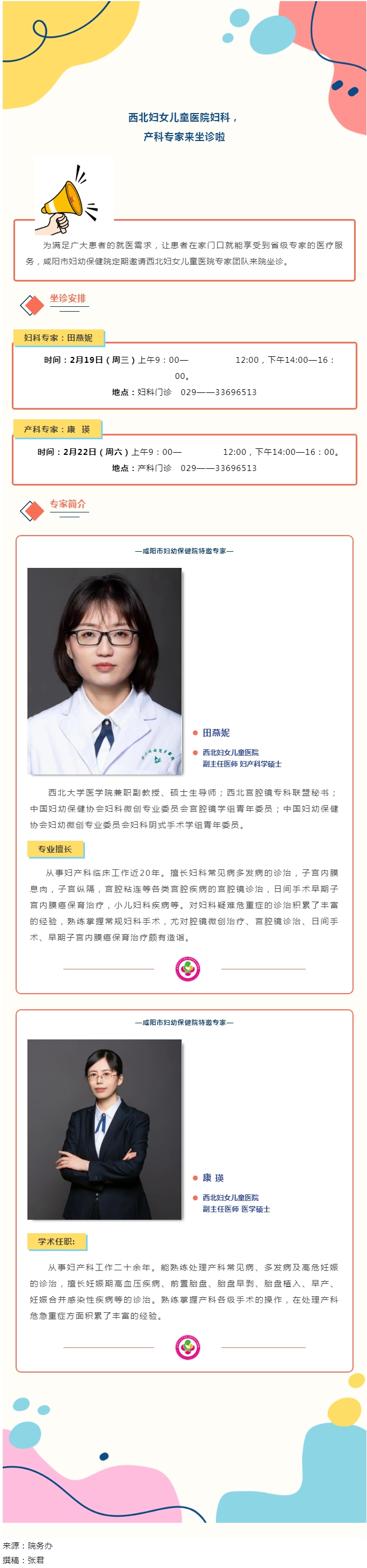 西北婦女兒童醫(yī)院婦科,產(chǎn)科專家來坐診啦