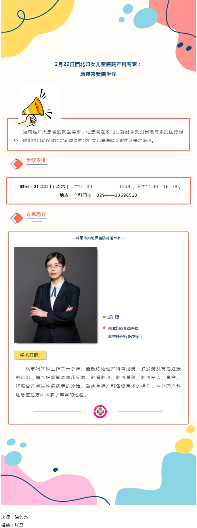 2月22日西北婦女兒童醫(yī)院產(chǎn)科專家康瑛來我院坐診