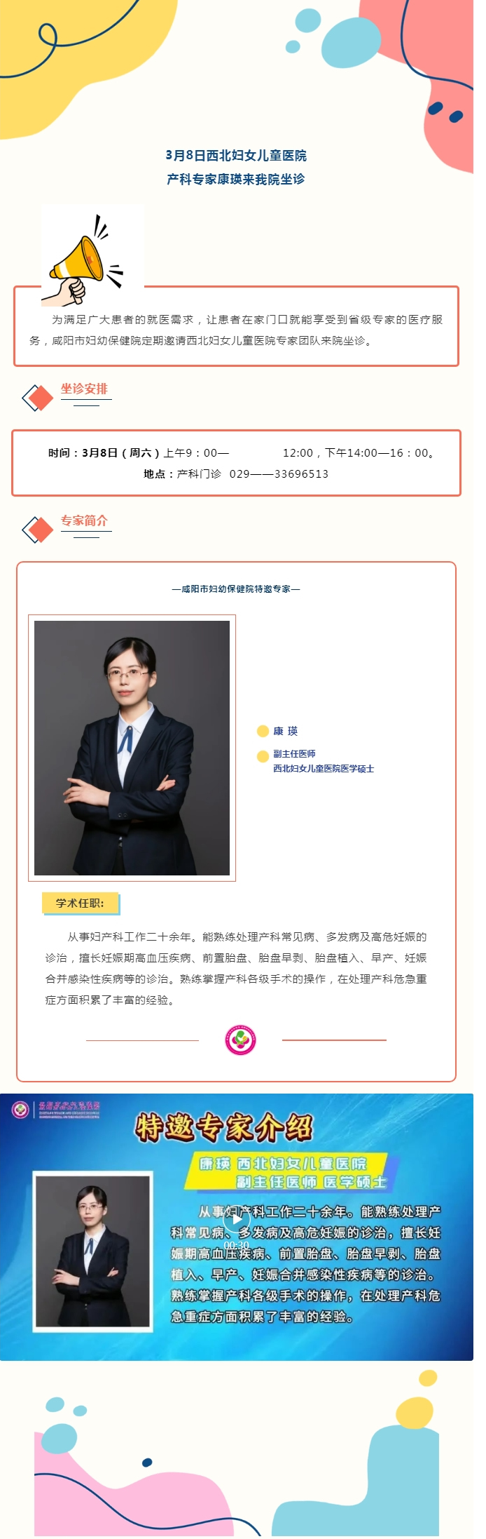 3月8日西北婦女兒童醫(yī)院產(chǎn)科專家康瑛來我院坐診
