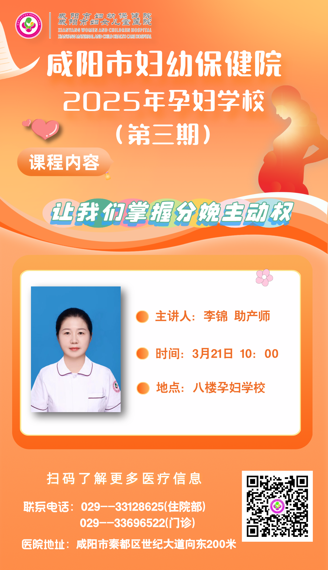 咸陽市婦幼保健院2025年(第三期)孕婦學校3月21日開講!