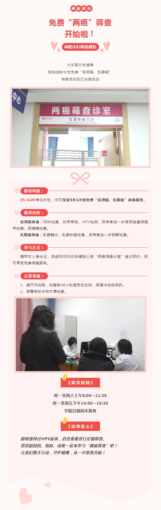 咸陽市婦幼保健院免費“兩癌”篩查開始啦!