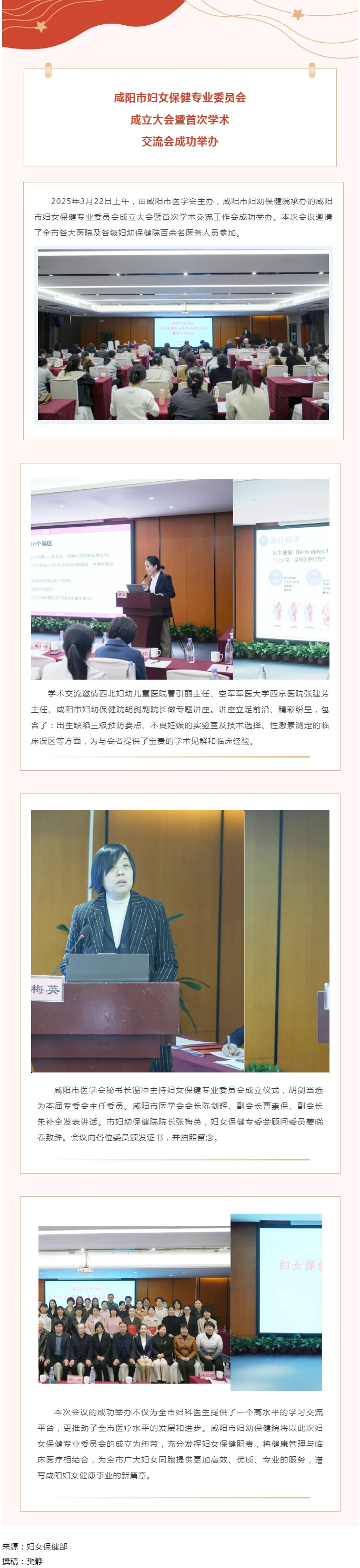 咸陽(yáng)市婦女保健專(zhuān)業(yè)委員會(huì)成立大會(huì)暨首次學(xué)術(shù)交流會(huì)成功舉辦