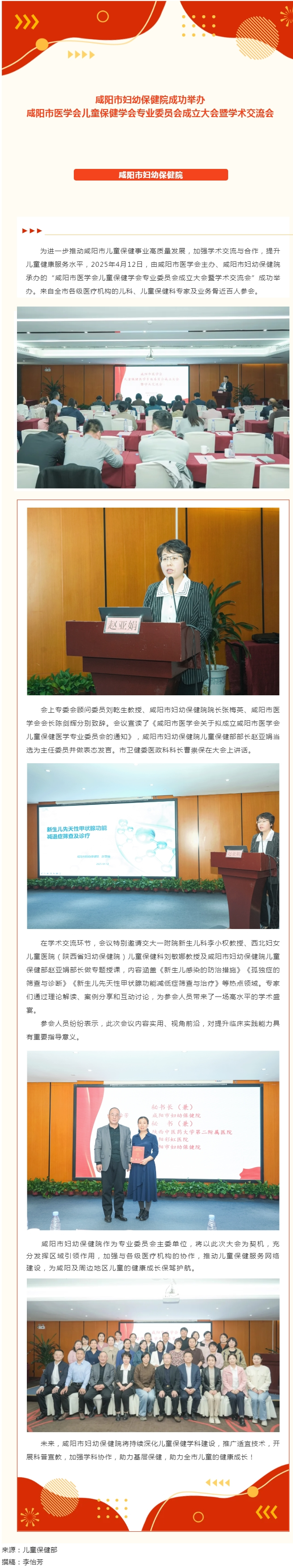 咸陽市婦幼保健院成功舉辦咸陽市醫(yī)學(xué)會兒童保健學(xué)會專業(yè)委員會成立大會暨學(xué)術(shù)交流會