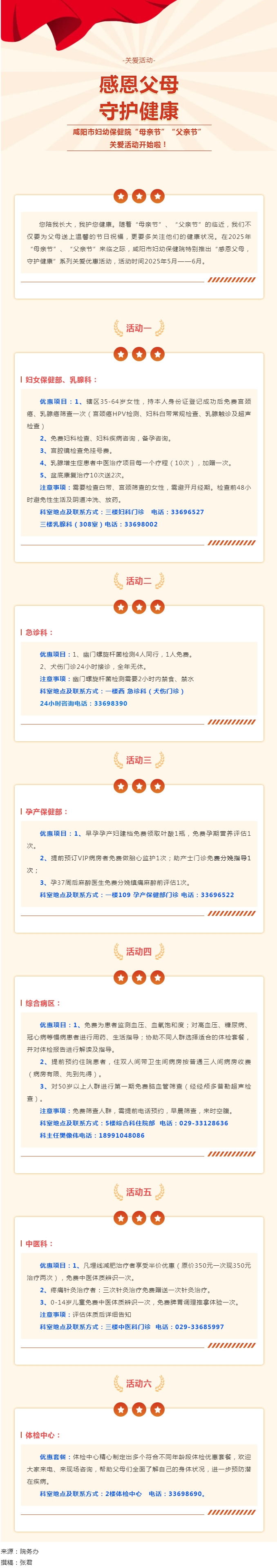 感恩父母,守護(hù)健康丨咸陽(yáng)市婦幼保健院“母親節(jié)”、“父親節(jié)”關(guān)愛(ài)活動(dòng)開(kāi)始啦!