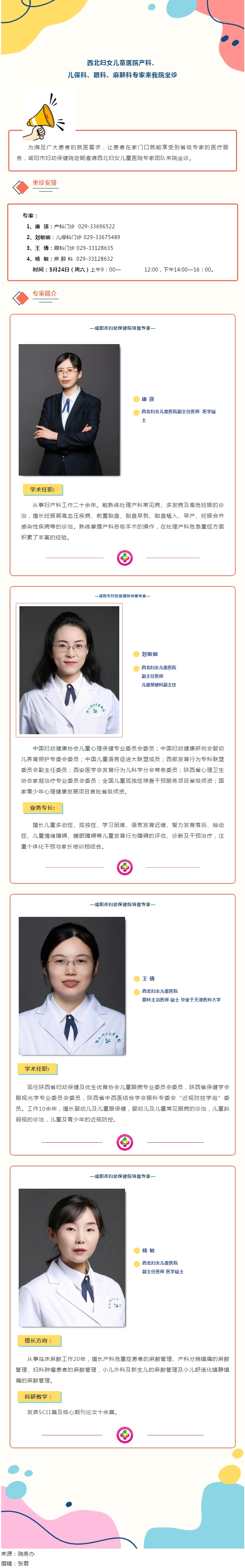 5月24日西北婦幼產(chǎn)科、兒?啤⒀劭、麻醉科專家來我院坐診