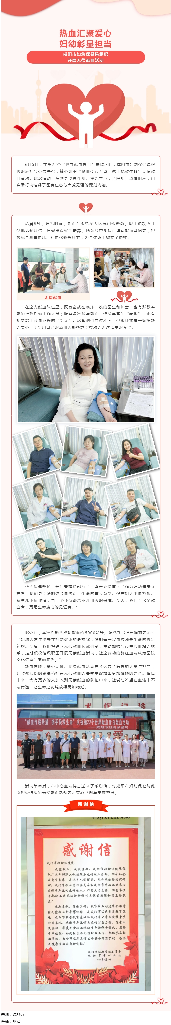 熱血匯聚愛心,婦幼彰顯擔當——咸陽市婦幼保健院組織開展無償獻血活動