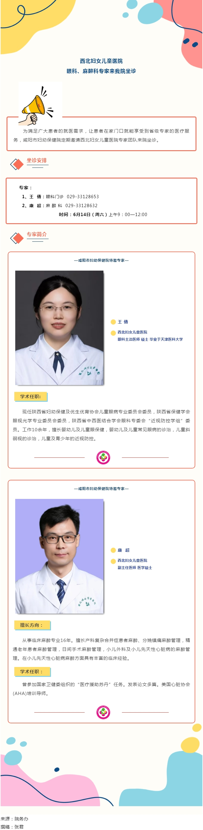 6月14日西北婦女兒童醫(yī)院眼科、麻醉科專(zhuān)家來(lái)我院坐診