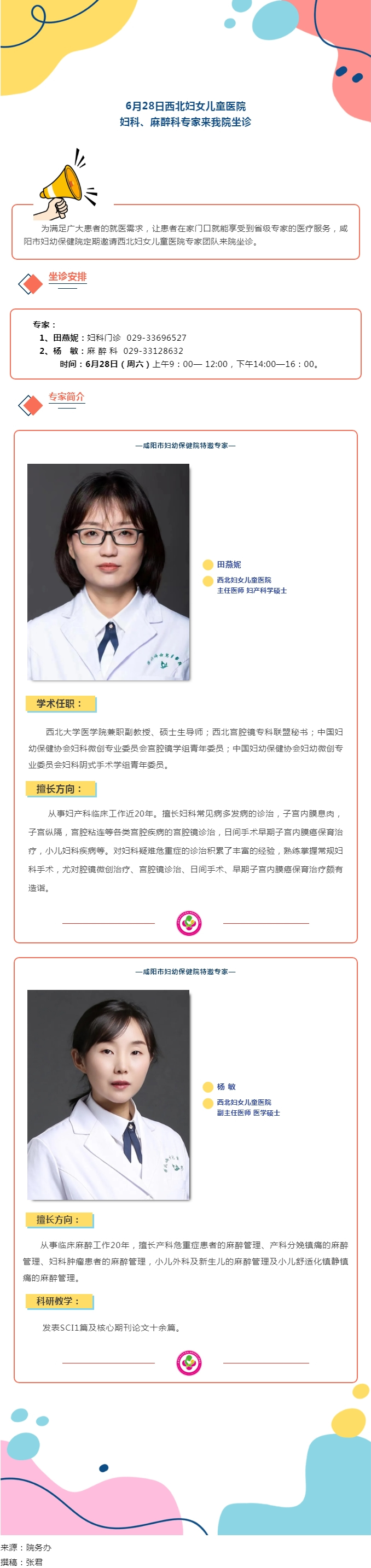 6月28日西北婦女兒童醫(yī)院婦科、麻醉科專家來我院坐診