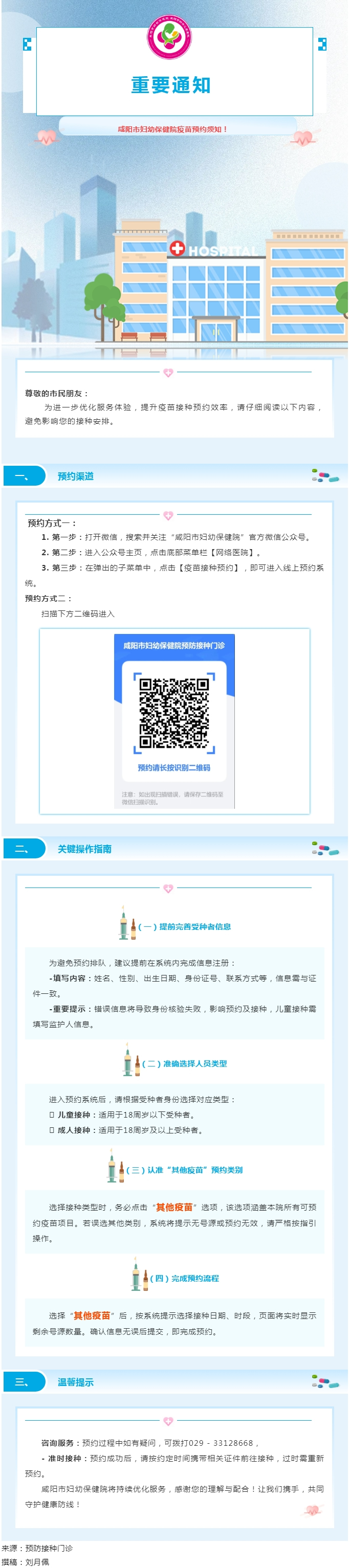 咸陽(yáng)市婦幼保健院疫苗預(yù)約須知!