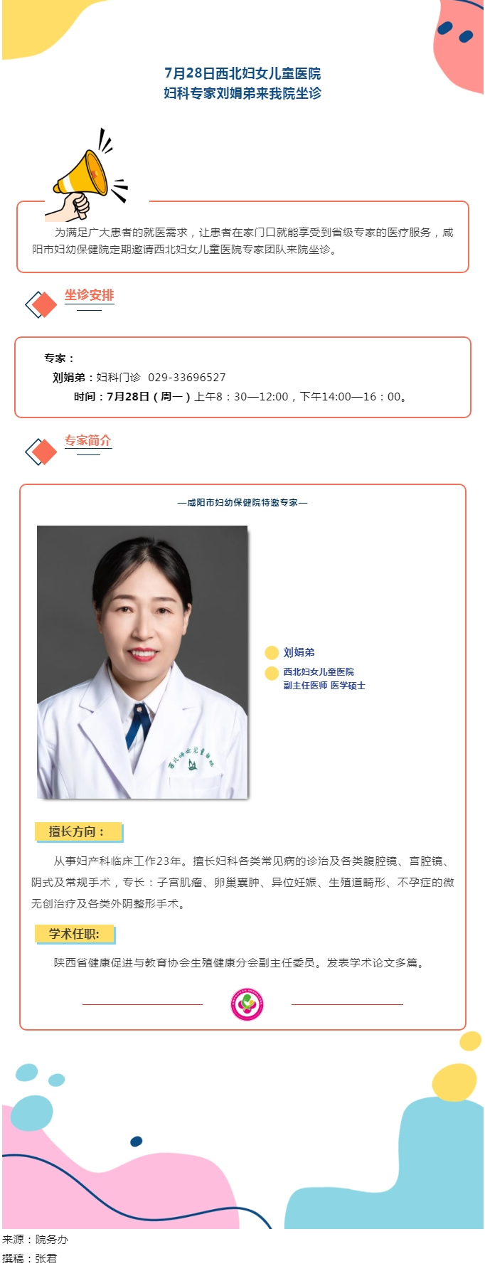 7月28日西北婦女兒童醫(yī)院婦科專家劉娟弟來我院坐診