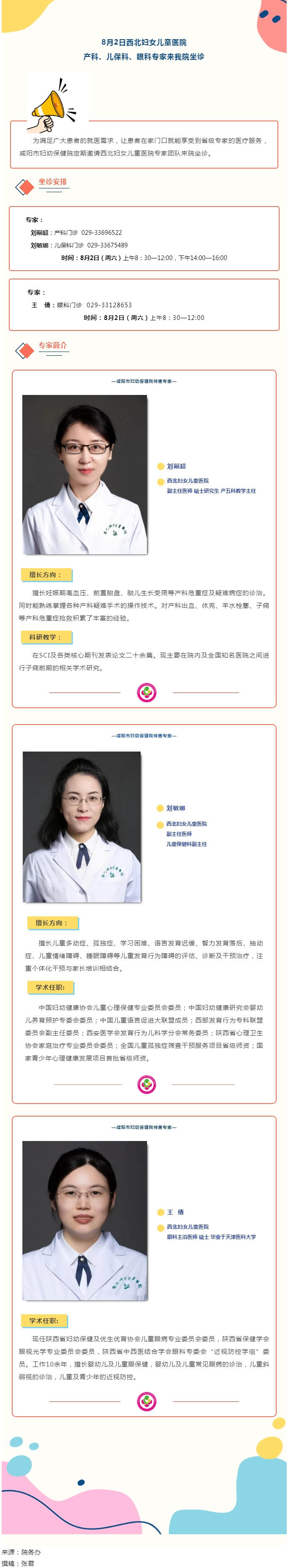 8月2日西北婦女兒童醫(yī)院產科、兒?、眼科專家來我院坐診