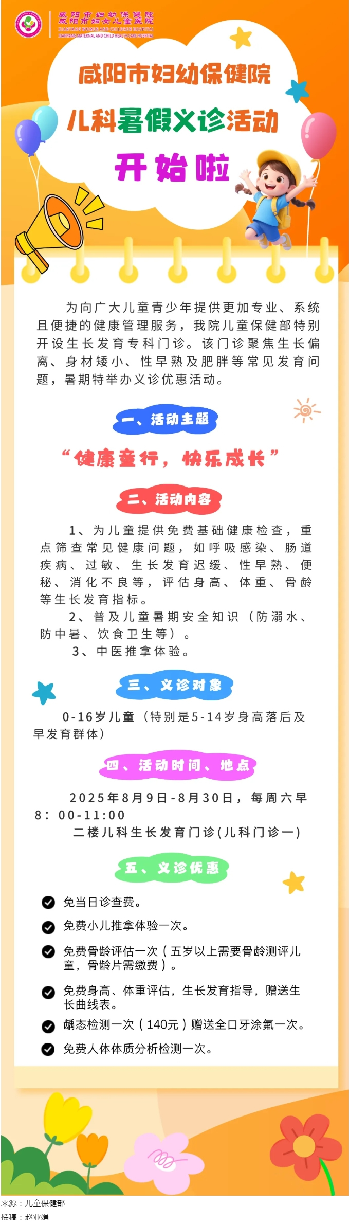 咸陽(yáng)市婦幼保健院兒科暑假義診活動(dòng)開(kāi)始啦!