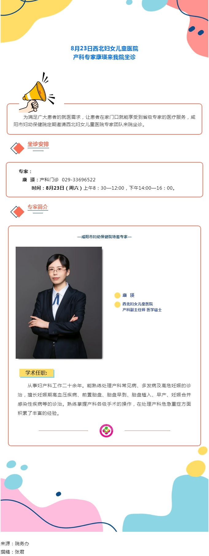 8月23日西北婦女兒童醫(yī)院產(chǎn)科專家康瑛來我院坐診