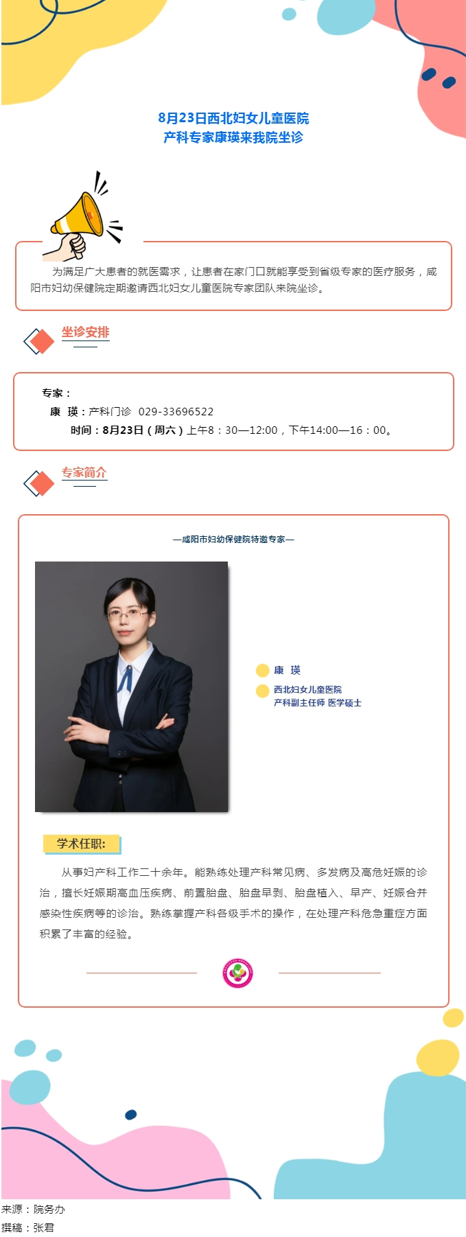 8月23日西北婦女兒童醫(yī)院產(chǎn)科專家康瑛來我院坐診