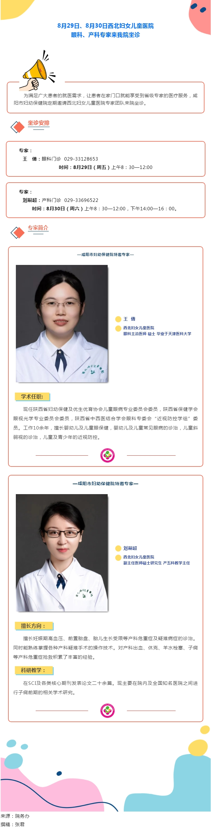 8月29日、8月30日西北婦女兒童醫(yī)院眼科、產(chǎn)科專家來我院坐診