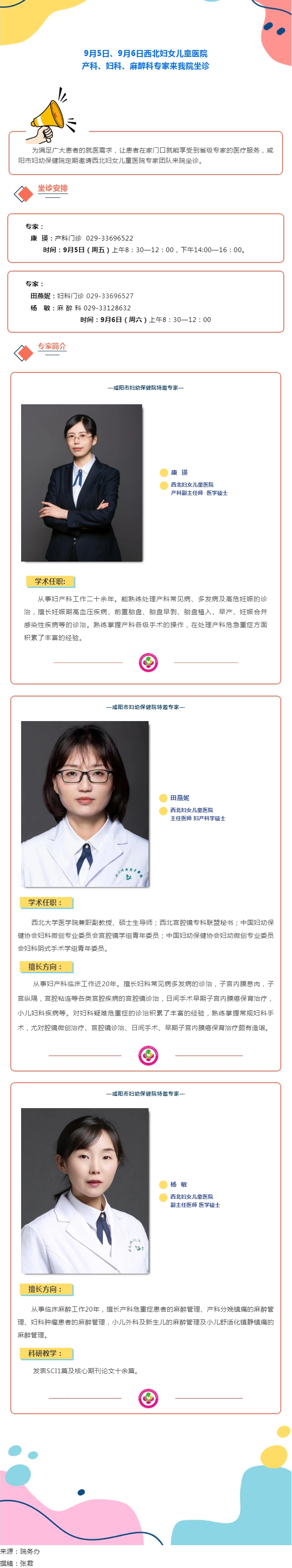 9月5日、9月6日西北婦女兒童醫(yī)院產(chǎn)科、婦科、麻醉科專家來我院坐診