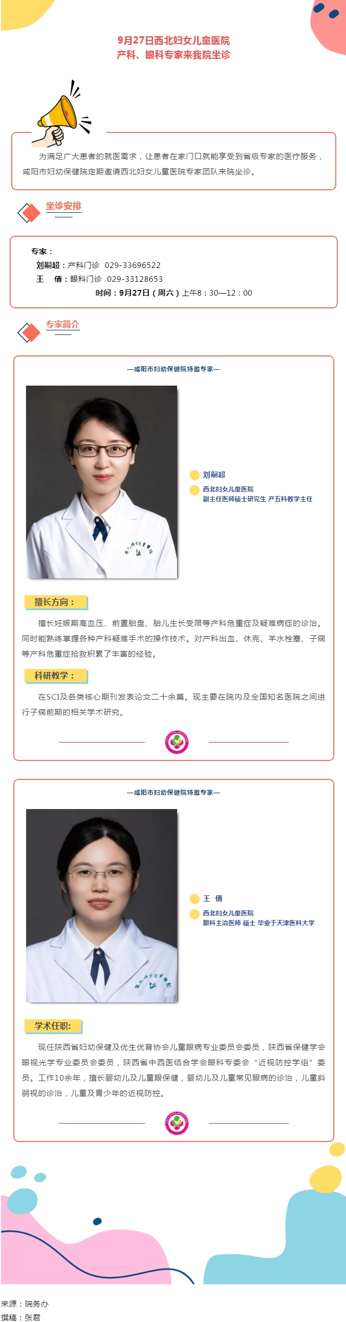 9月27日西北婦女兒童醫(yī)院產(chǎn)科、眼科專家來我院坐診