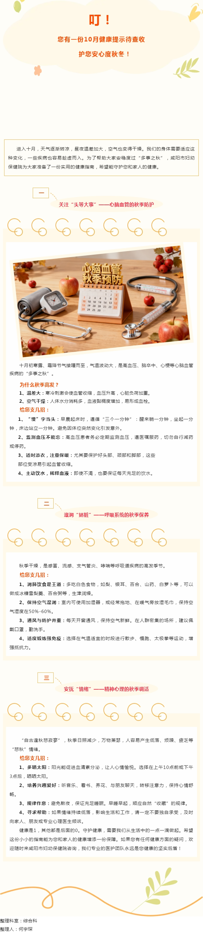 叮!您有一份10月健康提示待查收,護(hù)您安心度秋冬!
