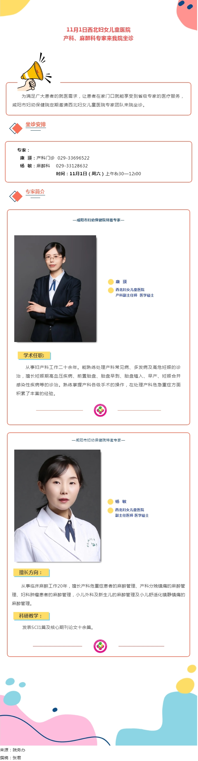 11月1日西北婦女兒童醫(yī)院產(chǎn)科、麻醉科專家來我院坐診