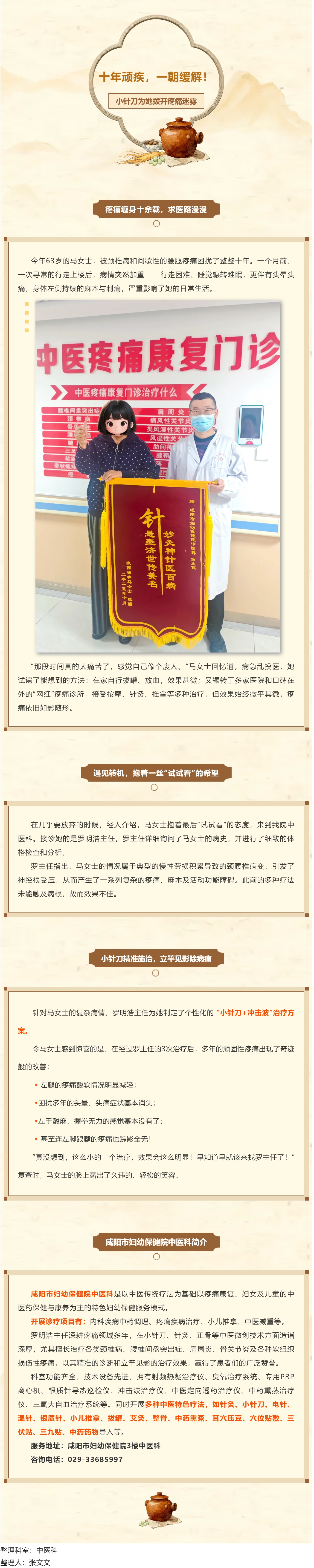 十年頑疾,一朝緩解!小針刀為她撥開疼痛迷霧