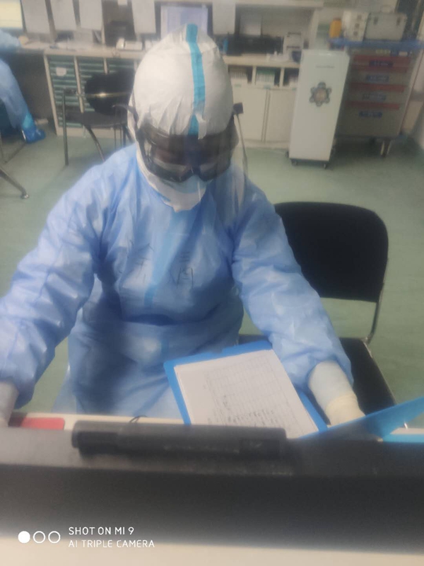 今天,我像往常一樣穿好防護用品進入重癥隔離病區(qū),看見31床的阿姨不愿意配合治療,她一邊哭一邊說:“我要回家,反正治也白治,還不如和家人多呆在一起......”“阿姨,我們陜西省醫(yī)療支援隊來到這邊就是為了和大家一起戰(zhàn)勝病魔的。這場戰(zhàn)“疫”,光靠我們醫(yī)護人員是打不贏的呀,我們必須共同努力,一起加油才行呀!”......經(jīng)過半個小時的勸說,阿姨終于平靜下來,輸液時她對我豎起了大拇指,說道:“謝謝,你們太棒了!”