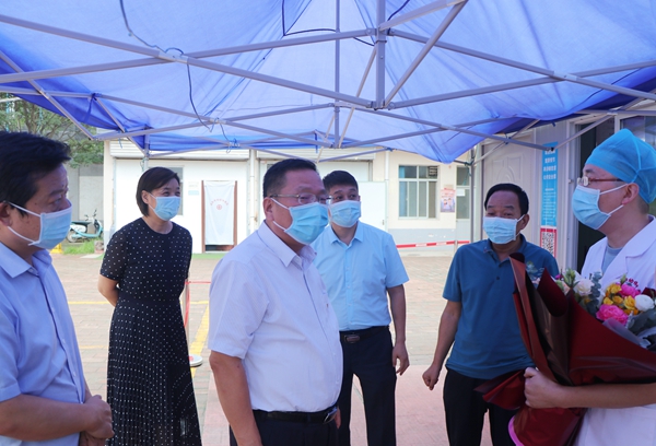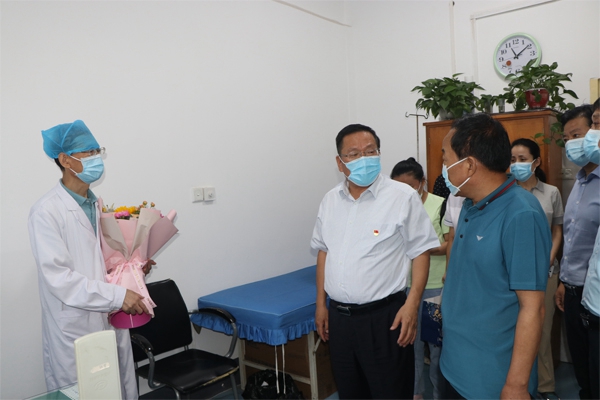 8月19日是第三個“中國醫(yī)師節(jié)”,王靖副市長專程來到我院走訪慰問醫(yī)務(wù)工作者,副秘書長董忠文、市衛(wèi)健委李建業(yè)副主任等人陪同。