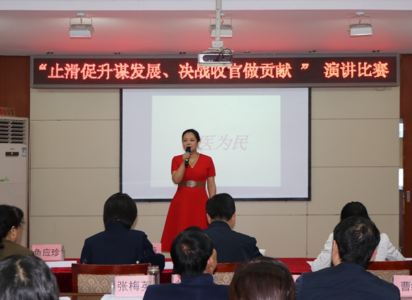 為緊扣市委市政府“止滑促升、決戰(zhàn)收官”主題主線,凝聚醫(yī)院發(fā)展合力,我院工會(huì)于11月26日隆重舉行了“止滑促升謀發(fā)展、決戰(zhàn)收官做貢獻(xiàn)”演講比賽。市教科文衛(wèi)工會(huì)主席楊勇方、院領(lǐng)導(dǎo)班子全體成員參加了活動(dòng),楊勇方主席和市廣播電臺(tái)著名主持人曹微應(yīng)邀擔(dān)當(dāng)評委。