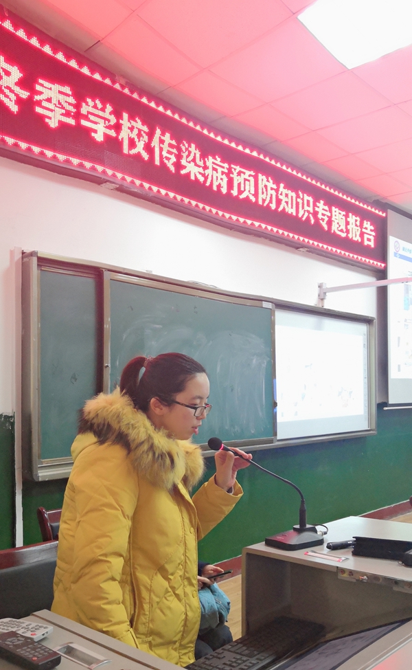 郭穎妮副科長為同學講解了呼吸道疾病的日常注意事項,讓同學們了解到在疫情期間要注意佩戴口罩,做到勤洗手、多通風,盡量減少外出和去人群聚集的地方,避免近距離接觸有感冒或流感癥狀的人。